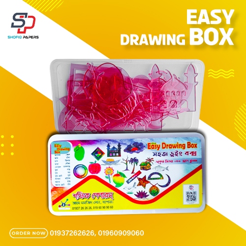 আপেল, আম, কলাগাছ, কাঁঠাল, গাছ, ঘর, চাঁদ, ডাব, ছোট তারা, বড় তারা, তালগাছ, দোয়েল, নৌকা, ফুল, বৃত্ত ছোট, বৃত্ত বড়, বৃত্ত মাঝারী, ফুল, শাপলা, সূর্য, স্কয়ার ছোট, স্কয়ার বড়, স্কয়ার মাঝার, স্কেল সহ আরও অনেক অনেক জিনিস দিয়ে অর্থাৎ ৩০ টি টুকরা টুকরা অংশ দিয়ে তৈরী এই ড্রইং সেট। এই ড্রইং সেটের সাহায্যে শিক্ষকের সহযোগিতা ছাড়াই ছোট্ট সোনামনিরা আঁকতে পারবে অনেক অনেক ধরণের ছবি। পূর্ণাঙ্গ দৃশ্য আঁকার জন্য এই ড্রইং বক্স খুবই উপকারে আসবে ছোট্ট সোনামনিদের।